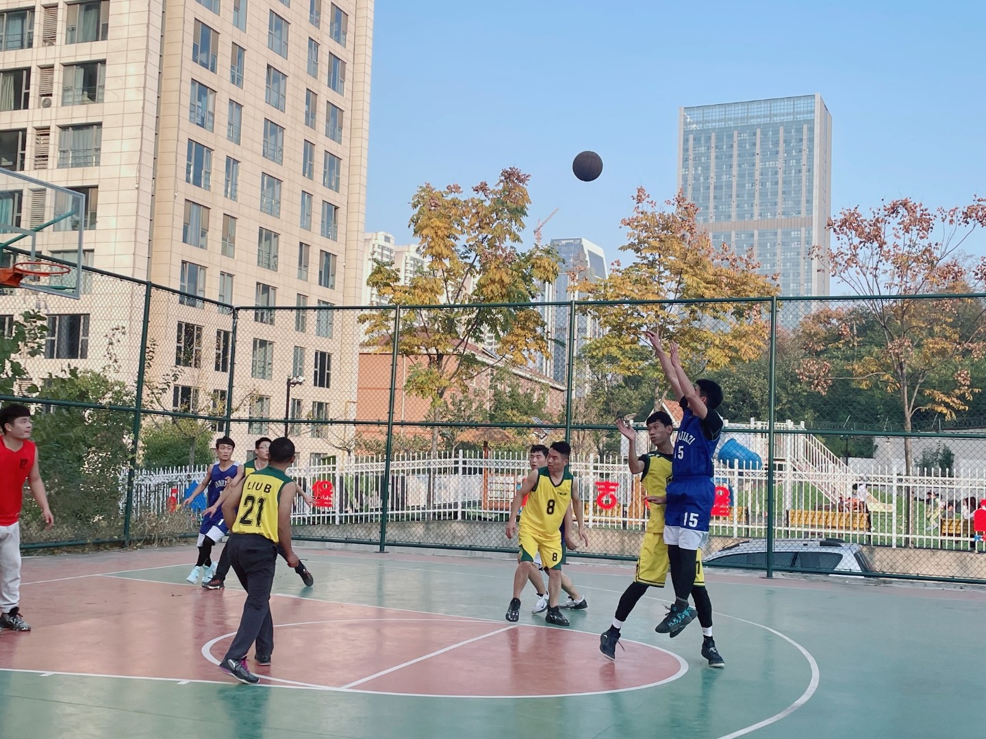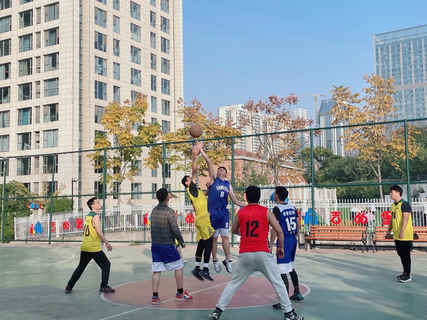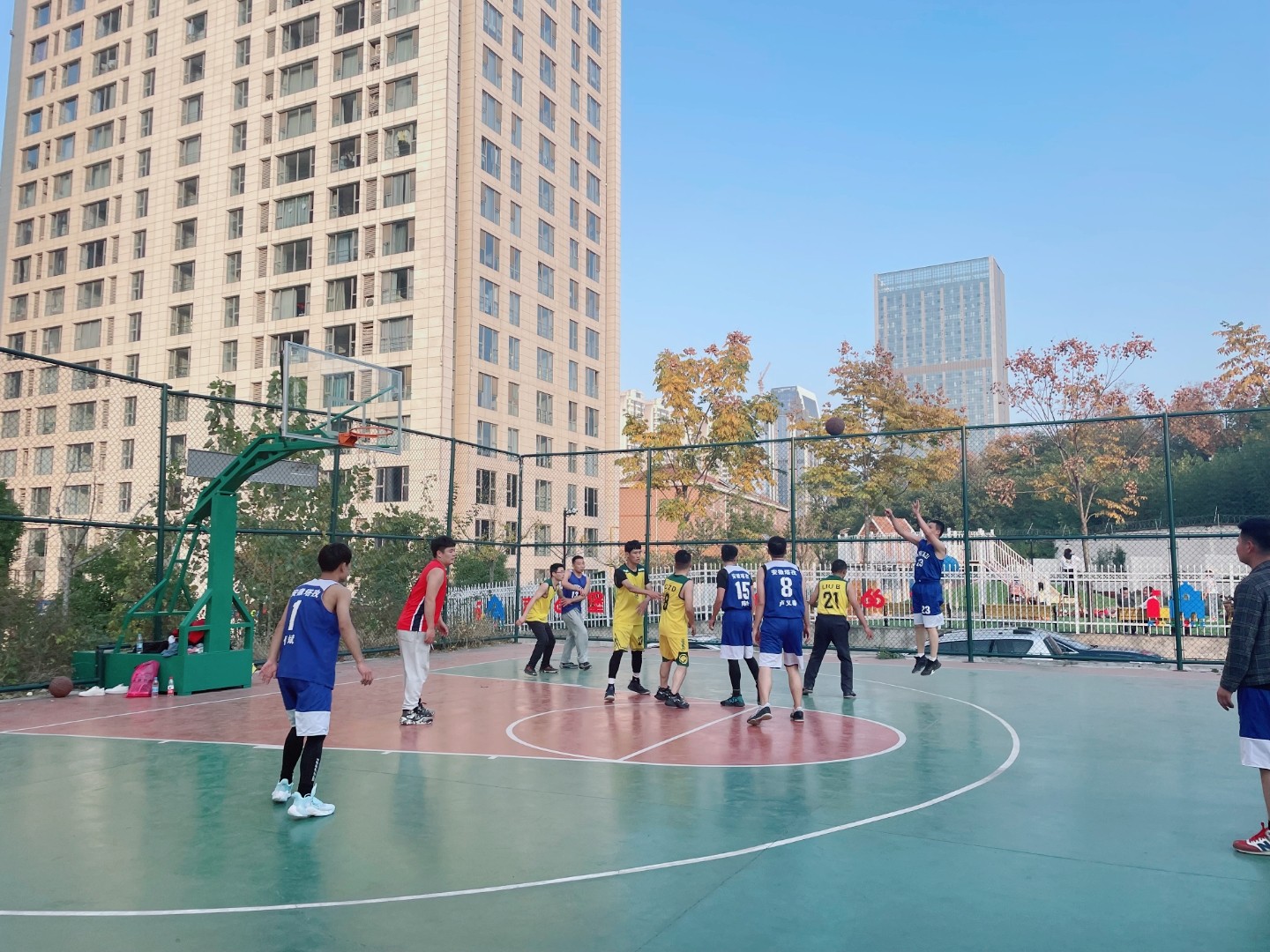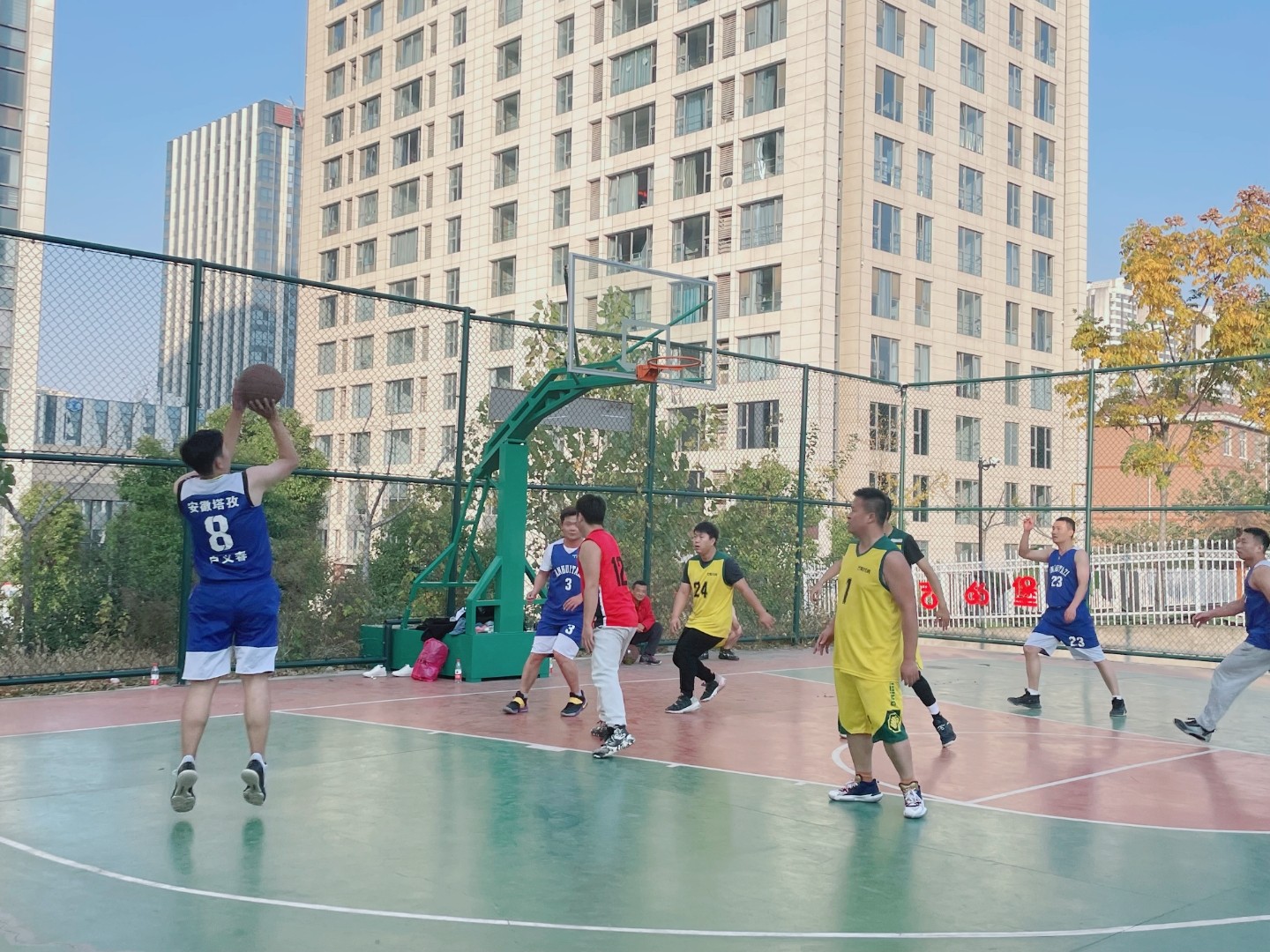 在鳳凰國際的籃球場(chǎng)地,正演繹著籃球運(yùn)動(dòng)的精彩,一個(gè)個(gè)矯健的身影來回奔跑著,陣陣吶喊聲和掌聲響徹在球場(chǎng)上空,這是2021年安徽塔孜·58安居客&蚌埠房產(chǎn)精英客戶籃球比賽的現(xiàn)場(chǎng)。
